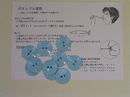 ボタンプル運動とは口輪筋を鍛えるための口腔機能向上訓練です。この運動に適するようにボタンの縁を薄くし形も湾曲させ、作成致しました。